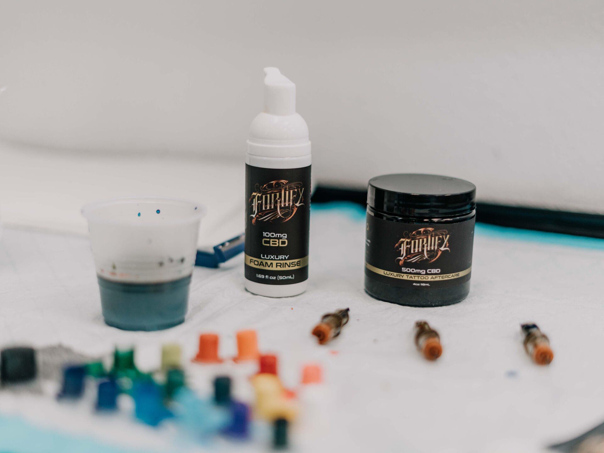 Fortify Luxury Tattoo Aftercare products are designed to take your tattoos to the next level. From start to finish, our luxury tattoo products are designed with you in mind. Try our Fortify CBD Foam Rinse, Luxury CBD Ointment and Fortify Stencil Glue!